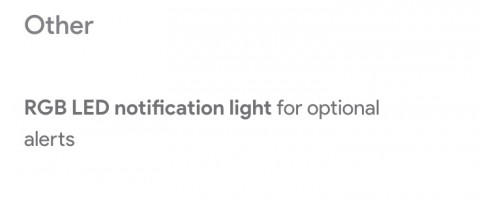LED ინდიკატორი მოთავსებულია სმარტფონის ზედა მარჯვენა კუთხეში. საიტერესოა, რომ ამის შესახებ არ ყოფილა საუბარი Google-ის მიერ, რადგან Google_ის ოფიციალურ საიტზე არსებობს ჩანაწერი: