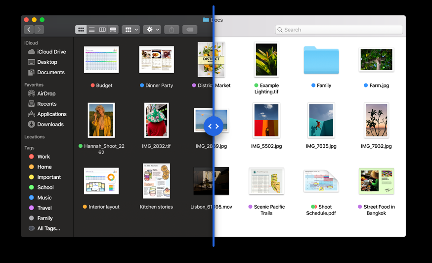Mojave – პირველი საოპერაციო სისტემაა Apple-ისგან, რომელსაც გაფორმების მუქი თემა აქვს და ის არა მხოლოდ ინტერფეისის ფერებს ცვლის არამედ ხვა მწარმოებლების აპლიკაციებსაც “აბნელებს”.