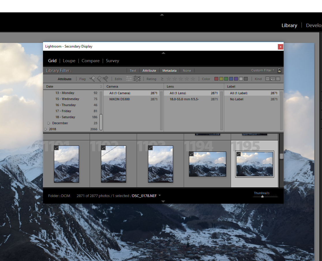 თუ ფოტოებს ინახავთ გარე მყარ დისკზე და გამოაერთებთ მყარ დისკს, იგივე ფოტოებს მაინც ხედავთ Lightroom-ში. უბრალოდ, ეს არის ძალიან დაბალი გაფართოების მქონე პრევიუები და მათ აქვთ პატარა ძახილის ნიშანი, რომელიც გვეუბნება, რომ Lightroom დაბნეულია.