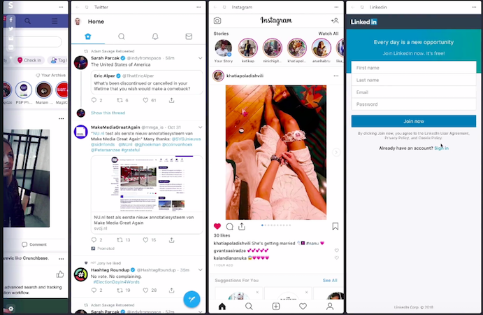 სთექში შესაძლებელია რამდენიმე აპლიკაციის ერთ ფანჯარაში გამოყენება და გვერდით პანელზე დახარისხება კატეგორიების ან გამოყენების სიხშირის მიხედვით.