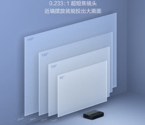 ვიზუალურად MIJIA Laser Projector 4K ფაქტიურად არ განსხვავდება წინა მოდელისაგან. შეიცვალა მხოლოდ კორპუსის ფერი – თეთრის ნაცვლად არის მუქი ნაცრისფერი. პროექტორს აქვს ულტრამოკლე ფოკუსური ლინზა, რაც საშუალებას იძლევა პროექტორი კედელთან ახლოს მოვათავსოთ: 49სმ დაშორება გვაძლევს 150 დიუმიან გამოსახულებას, 34 სმ – 120″, 24სმ – 100″, 14სმ – 80′. გამოსული გამოსახულების გაფართოება არის 3840×2160 პიქსელი.