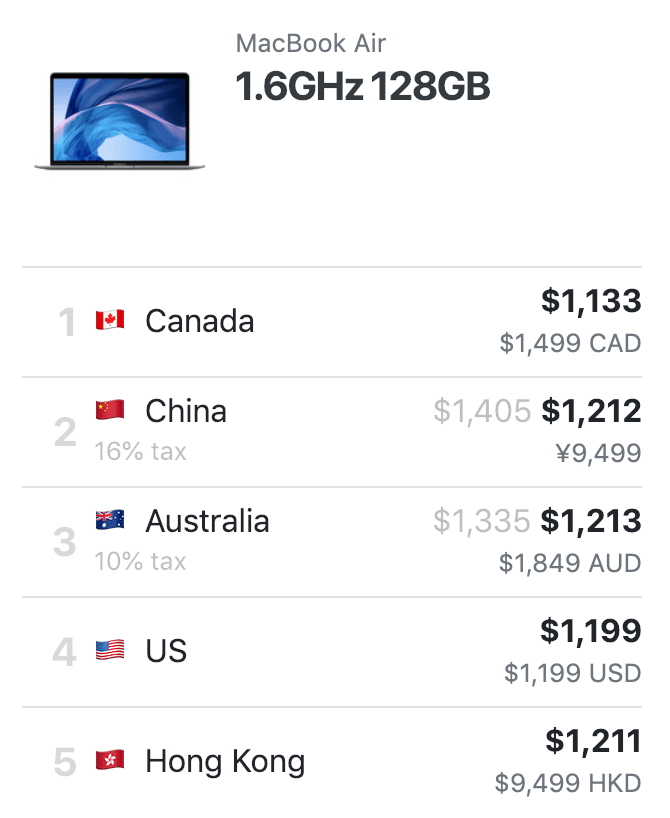 ოდესმე გიფიქრია თუ არა, სხვადასხვა ქვეყნები რამდენად სარფიან ფასად ყიდიან Apple-ის პროდუქტებს? ან, გინანია თუ არა რომ საზღვარგარეთ ყოფნისას არ იყიდე iPhone? ვებ-გვერდის Mac Index-ის გამოყენებით, შეგიძლია დანამდვილებით იცოდე ამ კითხვებზე პასუხი.
