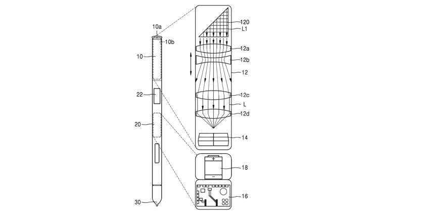 ახალ პატენტში საუბარია იდეაზე, რომ სტილუსში შესაძლებელია კამერის სრულფასოვანი მოდული მოთავსება ოპტიკური ზუმის შესაძლებლობით. მომხმარებელი შეძლებს სტილუსი დაუმიზნოს საკუთარ თავს ან სხვა ობიექტს მისი ფოტოს ან ვიდეოს გადასაღებად.