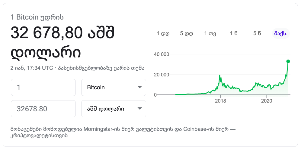 ბიტკოინის მიმდინარე საბაზრო კაპიტალიზაცია 550 მილიარდი დოლარია დაახლოებით, რაც Visa-ს კაპიტალიზაციაზე მეტია. მსოფლიოს ერთ-ერთი უმსხვილესი გადახდების სისტემის მონაცემები დაახლოებით 485 მლრდ. დოლარია.