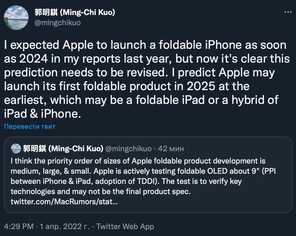 ანალიტიკოსი თვლის, რომ Apple-ის პირველი მოწყობილობა მოქნილი დისპლეით გამოვა არაუადრეს 2025 წელს. და ეს არის ყველაზე ადრეული გამოშვების თარიღი.