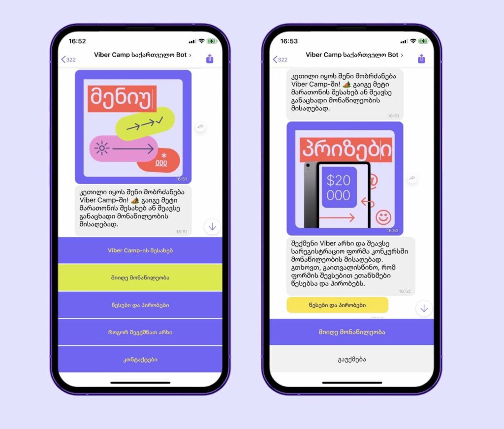 მასშტაბური ციფრული 30 დღიანი გამოწვევა ავტორებისა და კონტენტის შემქმნელებისთვის არის განკუთვნიული. მარათონი სპეციალურ Viber Camp Chatbot-ში ჩატარდება, სადაც მონაწილეები სხვადასხვა დავალებებს მიიღებენ. მათ თეორიული და პრაქტიკული დავალებების შესრულება მოუწევთ.