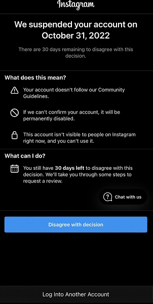სოციალური ქსელი ინსტაგრამის მომხმარებლებმა შეტყობინება მიიღეს, რომ მათი ანგარიშები დაიბლოკა. ხარვეზი 31 ოქტომბერს დაფიქსირდა და მსოფლიოს მასშტაბით მილიონობით ადამიანს შეეხო. გაუგებრობა რამდენიმე საათის განმავლობაში გაგრძელდა.