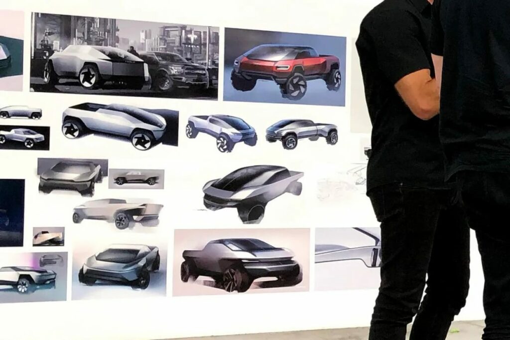 სურათზე მარცხნივ არის პიკაპების სურათები. როგორც ჩანს, Tesla ყოველთვის არ განიხილავს ვარიანტებს კუთხოვანი დიზაინით.
