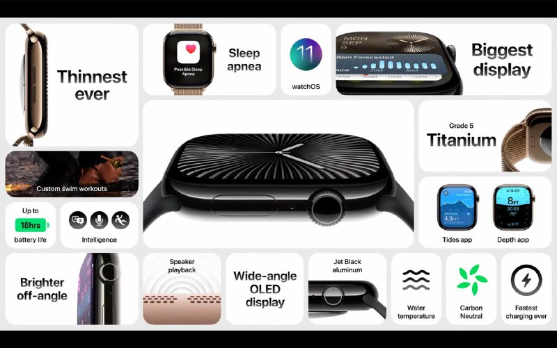 Apple-მა პრეზენტაციაზე წარმოადგინა Apple Watch Series 10. ჭკვიანი საათები გახდა უფრო თხელი და მიიღო ფართოკუთხოვანი OLED ეკრანი.