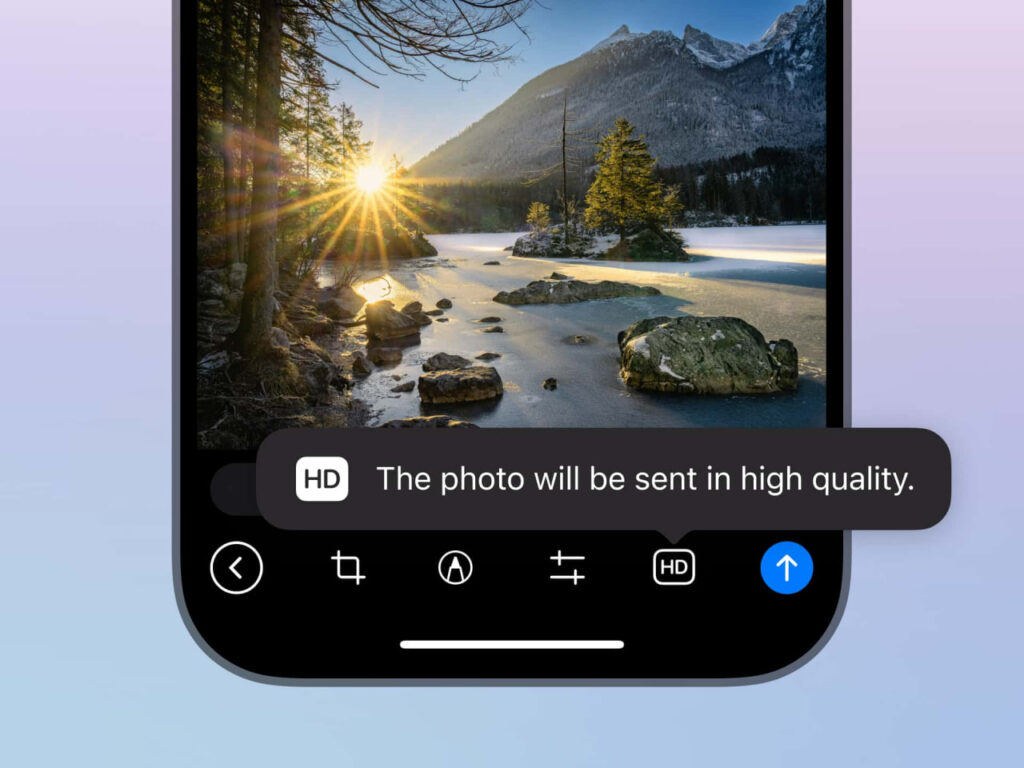 ფოტოების ჩვეულებრივი გაგზავნისას Telegram აკუმშავს გამოსახულებებს უფრო სწრაფი მიწოდებისთვის და მობილური ტრაფიკის 90%-ის დაზოგვისთვის. ახლა ფოტოების გაგზავნისას შესაძლებელია მაღალი გარჩევადობის არჩევა (მსგავსი ფუნქცია ვიდეოების გაგზავნის დროსაც არსებობს).